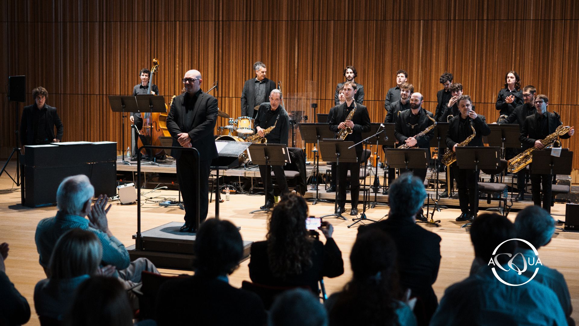 orchestra di sassofoni, trombe, tromboni, chitarra, pianoforte, contrabbasso, batteria