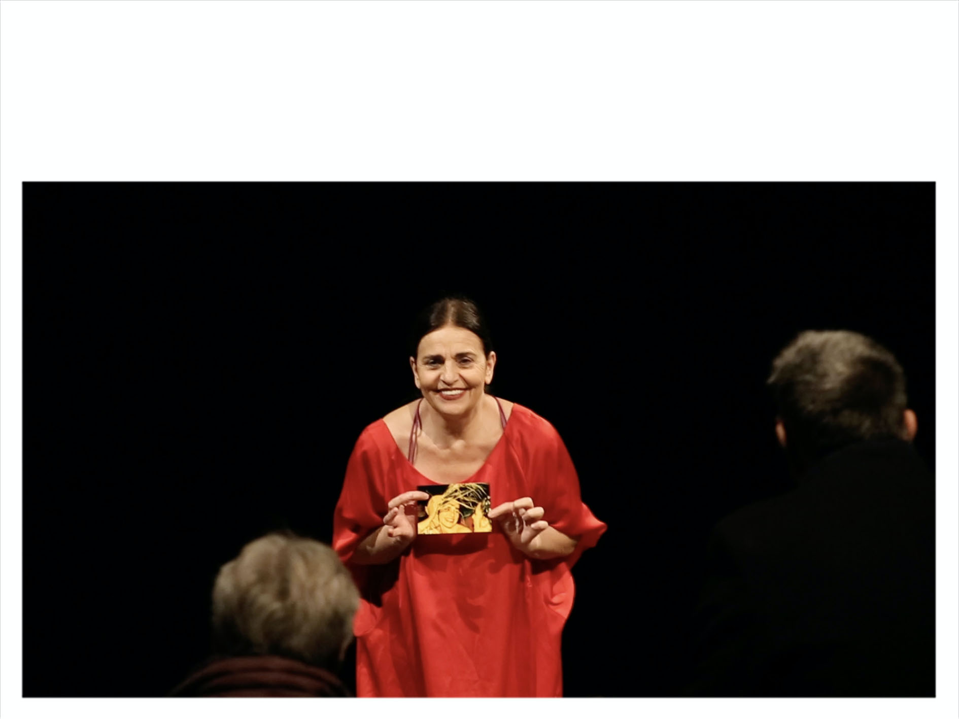 Marigia Maggipinto ci invita ad entrare nella sua vita. Lo fa attraverso alcuni ricordi, in forma di materiali e reperti, disposti su un tavolino, che il pubblico è chiamato a scegliere, di volta in volta. Per ognuno di questi, la danzatrice regala un frammento, un racconto, un aneddoto legato al suo passato di grande interprete e amica di Pina Bausch.