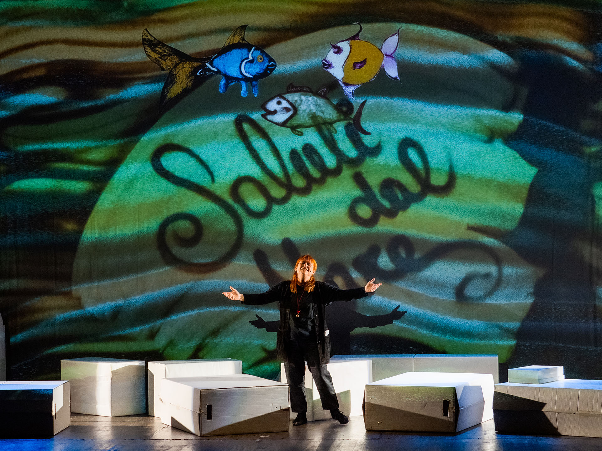 Lo spettacolo è stato costruito con una tecnica originale che fa interagire differenti linguaggi. Nel cast dello spettacolo ci sono un artista multimediale che muove i personaggi realizzati in digitale e li fa interagire con l’attrice ed una sand artist che scolpisce, modella, disegna con la sabbia con straordinaria abilità creando ambienti e situazioni che tramite una video camera vengono proiettate in diretta. Giallo Mare Minimal Teatro da oltre trenta anni produce spettacoli con segni grafici, pittorici in digitale che dialogano con il corpo, i gesti e il racconto dell’attore.