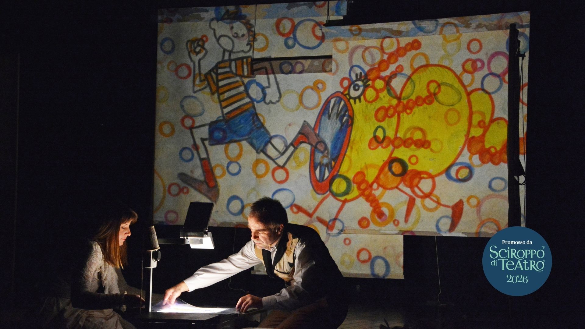 Genere spettacolo: teatro d'attore e disegno dal vivo con lavagna luminosa