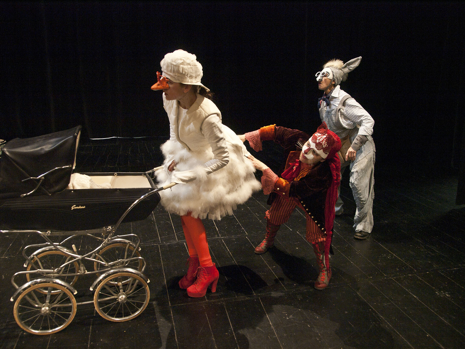 E se all’asino, al cane, al gatto e al gallo – no, il gallo no, come dice la canzone “il gallo è morto” e al suo posto si unisce al gruppo un’oca – capitasse d’incontrare una cicogna, che sta facendo il suo lavoro di distribuire bambini nelle famiglie del mondo, un po’ disorientata davanti a un indirizzo irrintracciabile…