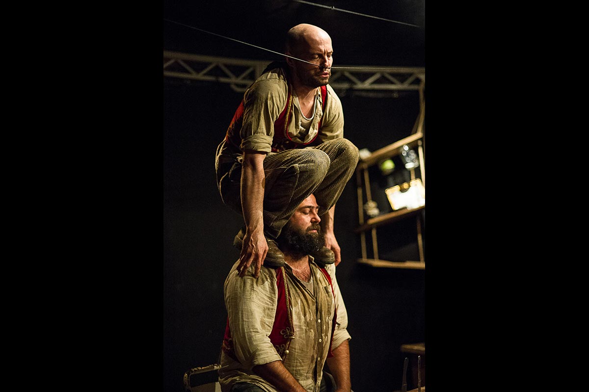 Due amici scontrosi e geniali condividono con il pubblico le stravaganze della loro quotidianità. Tra follie e scherzi irridenti, una cosa preme loro più delle altre: portare avanti il misterioso rituale della preparazione di un vin brulé. Con l’anima (e la bottiglia) impantanata in “bassa marea”, i piedi bloccati nel presente e la testa tra le stelle, i due attori appaiono esperti nella goffaggine, precisi nell’imprecisione e splendidi nel ridicolo, raccontando con semplicità e ironia il loro sentirsi spesso naufraghi. L’esilarante spettacolo, dopo più di un decennio di repliche in tutto il mondo, è ormai un classico della nuova giocoleria clownesca.