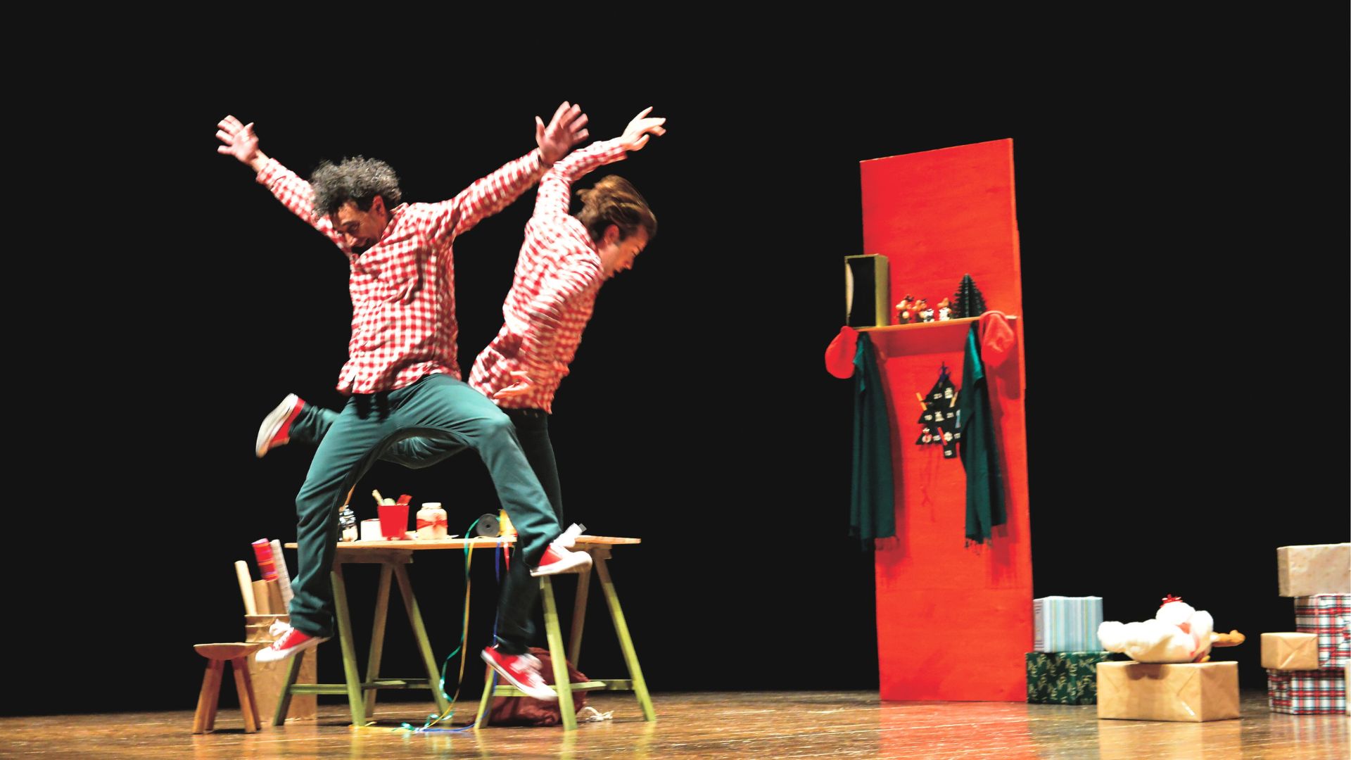 Ne nasce uno spettacolo che – pur partendo da un immaginario profondamente romantico come quello del Natale – lo affronta con uno sguardo leggermente dissacrante, rovesciando l’attesa poetica in una sarabanda di equivoci e gags dal ritmo incalzante. La comicità, volutamente estrema e fisica, è il cuore della messinscena: i due protagonisti si lasciano travolgere da giochi improvvisati, gags clownesche, buffe competizioni e invenzioni surreali, restituendo un Natale visto dal retrobottega, pieno di caos, risate, imprevisti e… poesia.